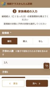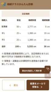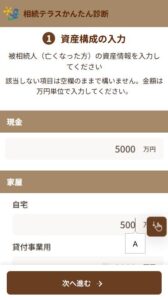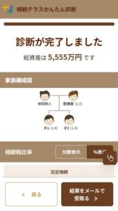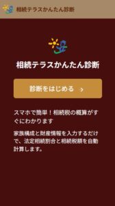 相続かんたん診断 かんたんな入力でその場で診断!相続かんたん診断! 診断スタート! » スマホやパソコンで、簡単な数字を入力すれば、相続税の概算が表示されます! 診断スタート! » ※この診断は概算による簡易計算となり、実際の相続税額とは異なる場合があります。 ※相続鑑定士にもっと詳しい個別相談をしたい場合はこちらのページからもお申し込み頂けます。