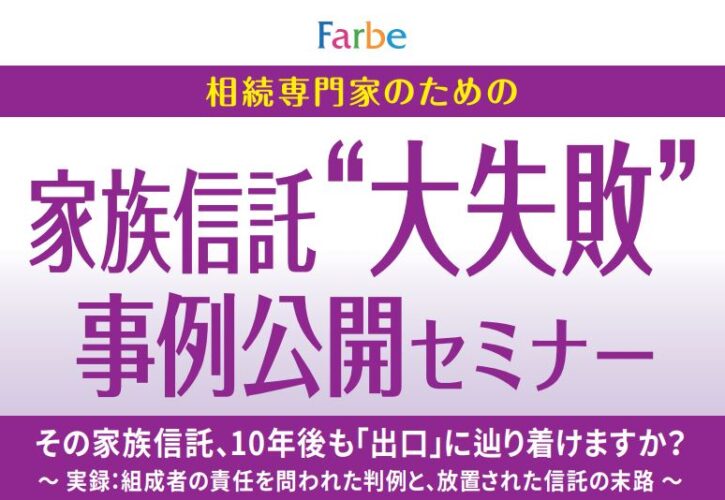 本セミナーでは、東京地裁の判決事例をはじめ、専門家が「善意」で提案したはずの信託が、なぜ「大失敗」に終わったのかを徹底解剖。セカンドオピニオン案件から見えてきたリアルな地獄絵図を共有し、明日からの案件管理フローを再定義します。